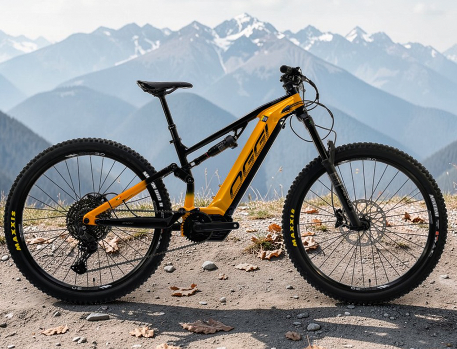 A e-bike conta com motor OGGI T-130 com 130 Nm de torque, bateria de longa duração com 840 Wh de capacidade de carga e autonomia de até 60KM. O computador é OGGI TFT 1.14 completo com assistência em 5 níveis e indicador de velocidade.