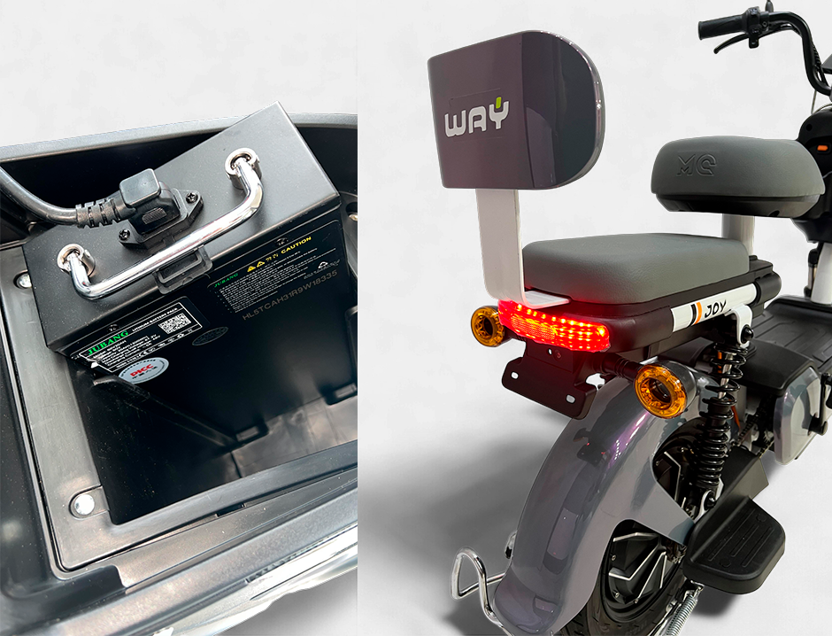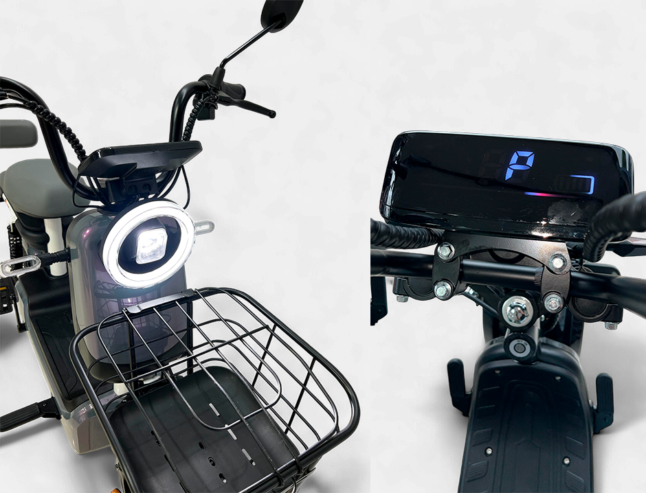 A Scooter Elétrica Joy foi desenvolvida para quem busca praticidade e mobilidade com estilo. Equipada com motor de 600W e bateria de lítio 60V 20Ah, oferece velocidade máxima de até 32 km/h e autonomia de até 60 km, garantindo trajetos ágeis e econômicos.